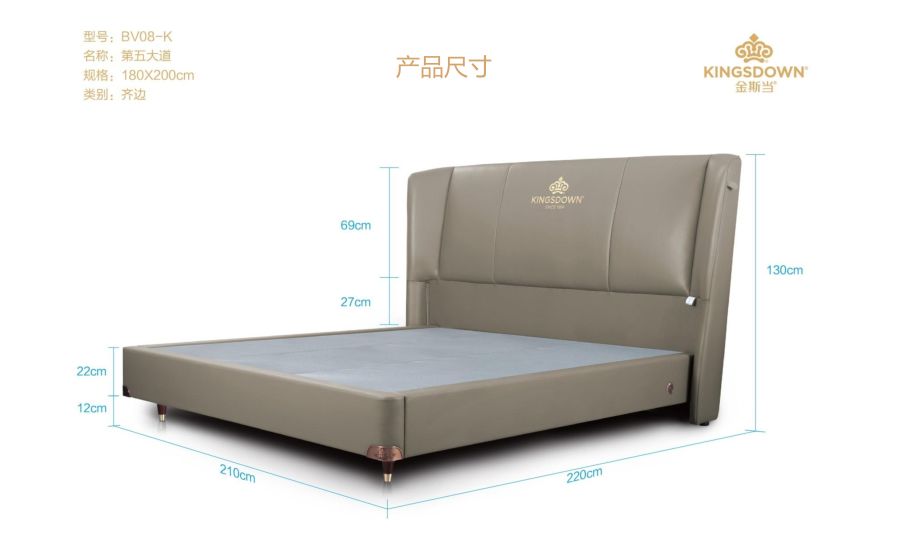 4.真皮:床头采用进口头层黄牛皮,皮质均匀,光泽度和柔软度极好,舒适透气;
