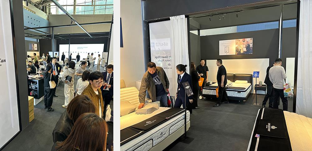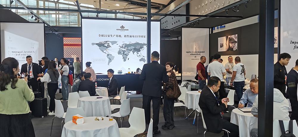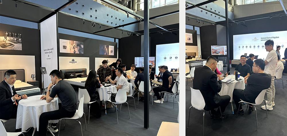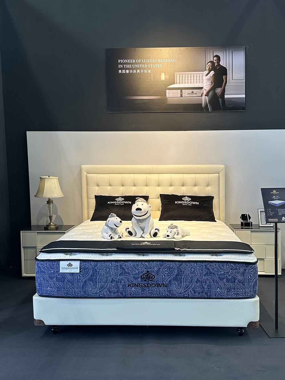 美国奢华床具开创者金斯当KINGSDOWN作为广州展的常驻嘉宾惊艳亮相A区4.2C10展位,展会期间,馆内人头攒动、络绎不绝,持续吸引诸多参展嘉宾莅临参观体验。